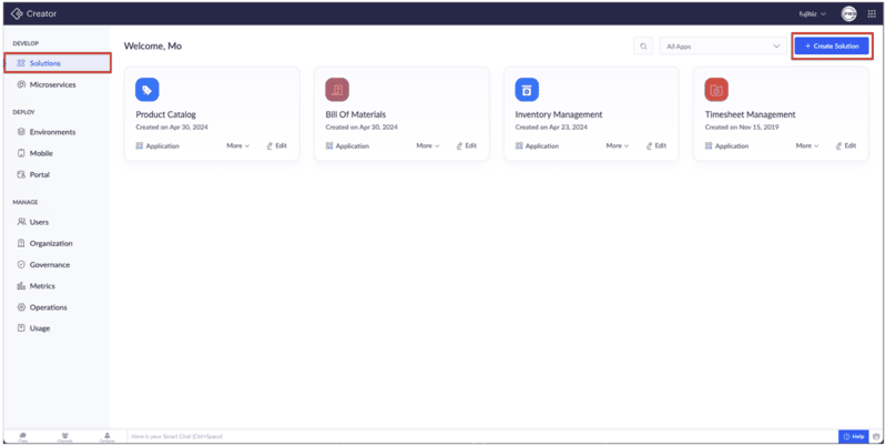 After sign-in, click "Create Solution" button on the top right corner.