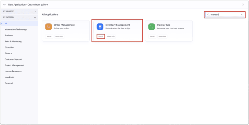 Select "Inventory Management" app and click "install" button.
