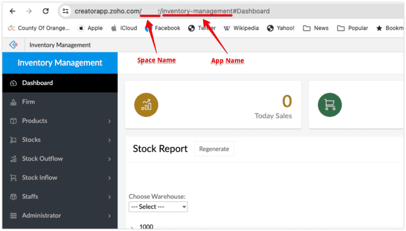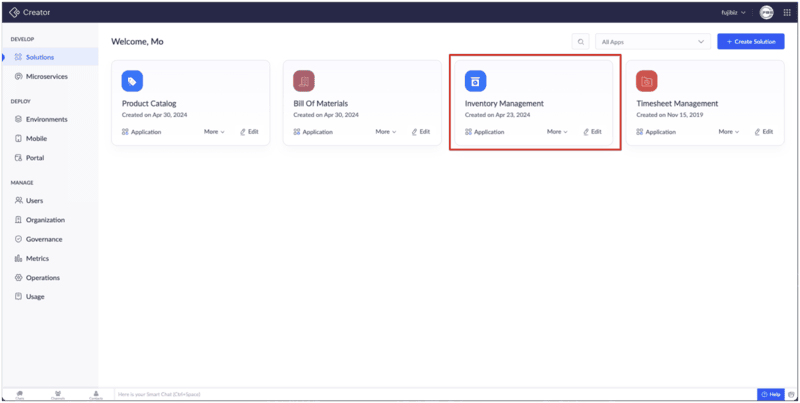 - Open Inventory Management app in ZOHO Creator.