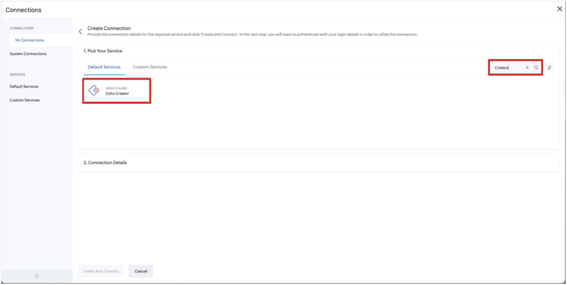 Then, click "Zoho Creator" as a default service.