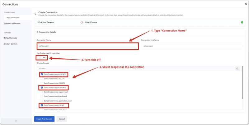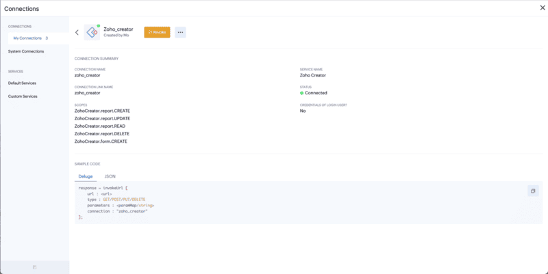 The connection to ZOHO Creator is created.
