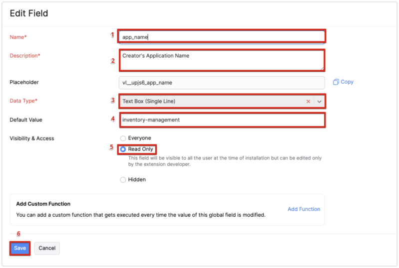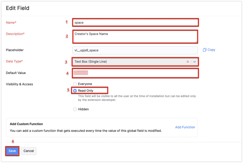 Follow below steps to set up "Global Fields".